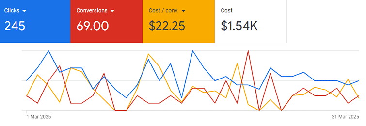 The implementation of Broad Match Keywords, along with a focused strategy has generated an all-time high in conversions in March.