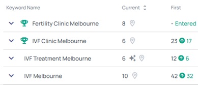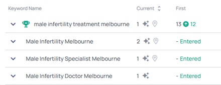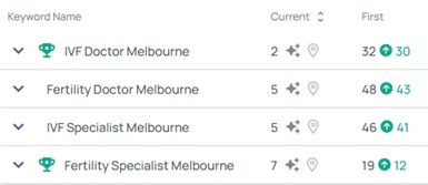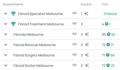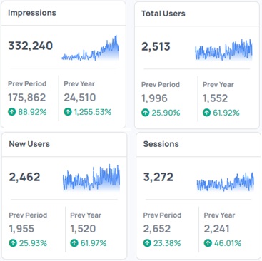 Page 1 rankings and 88% increase in organic impressions.