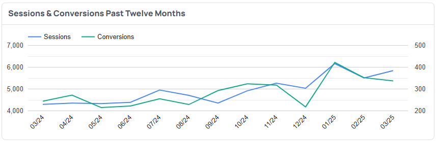 26.09% growth in organic sessions and 38.11% increase in conversions over a 12 month period.